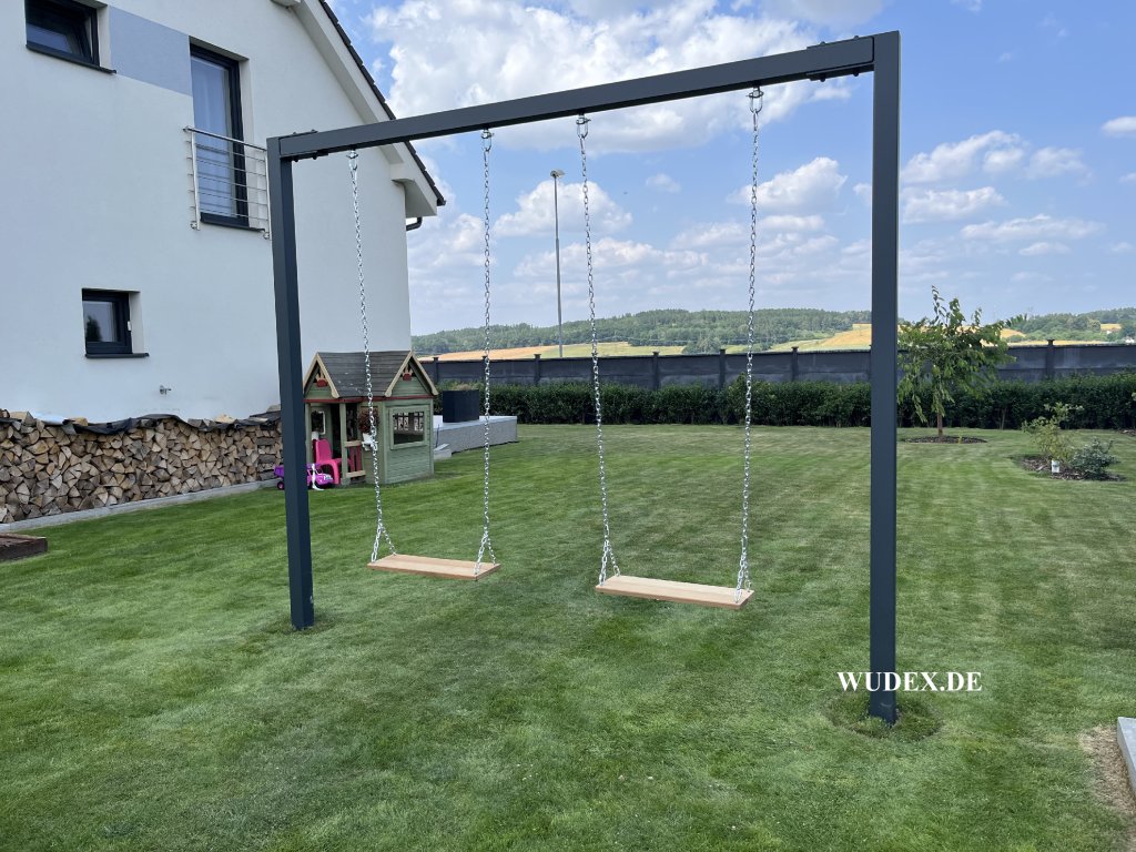 Die Konstruktion kann erhöht und erweitert werden. Wir können Schaukeln in verschiedenen Größen und Formen herstellen. Wir besprechen gerne Ihre Vorstellungen.