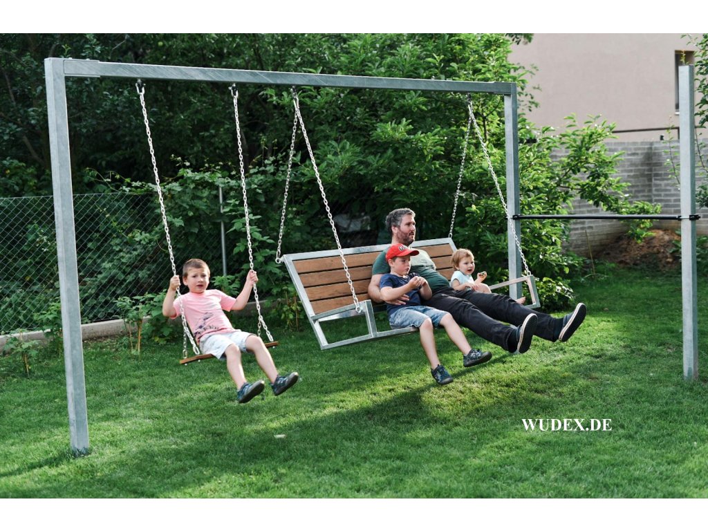 Die Konstruktion kann erhöht und erweitert werden. Wir können Schaukeln in verschiedenen Größen und Formen herstellen. Wir besprechen gerne Ihre Vorstellungen.