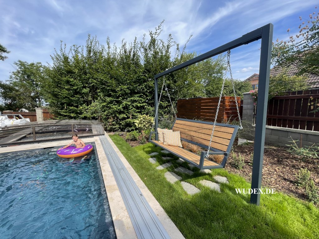 Die Konstruktion kann erhöht und erweitert werden. Wir können Schaukeln in verschiedenen Größen und Formen herstellen. Wir besprechen gerne Ihre Vorstellungen.